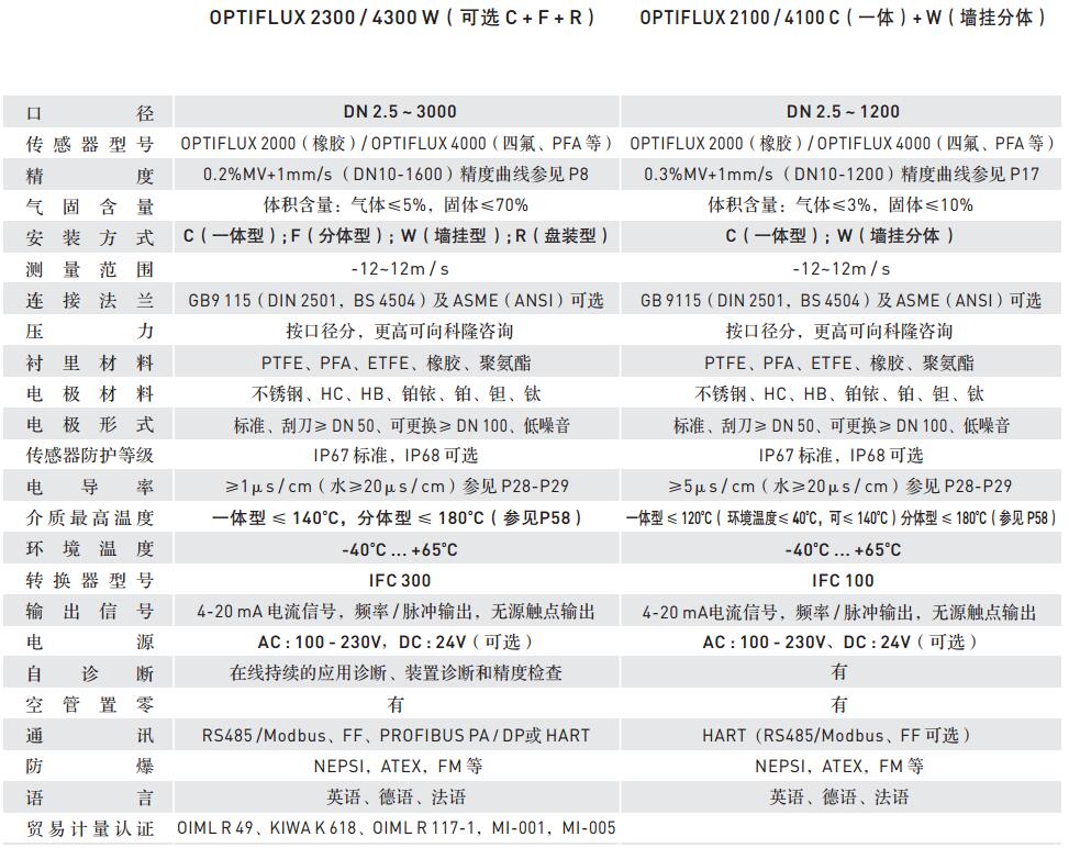 科隆電磁流量計OPTIFLUX2300W